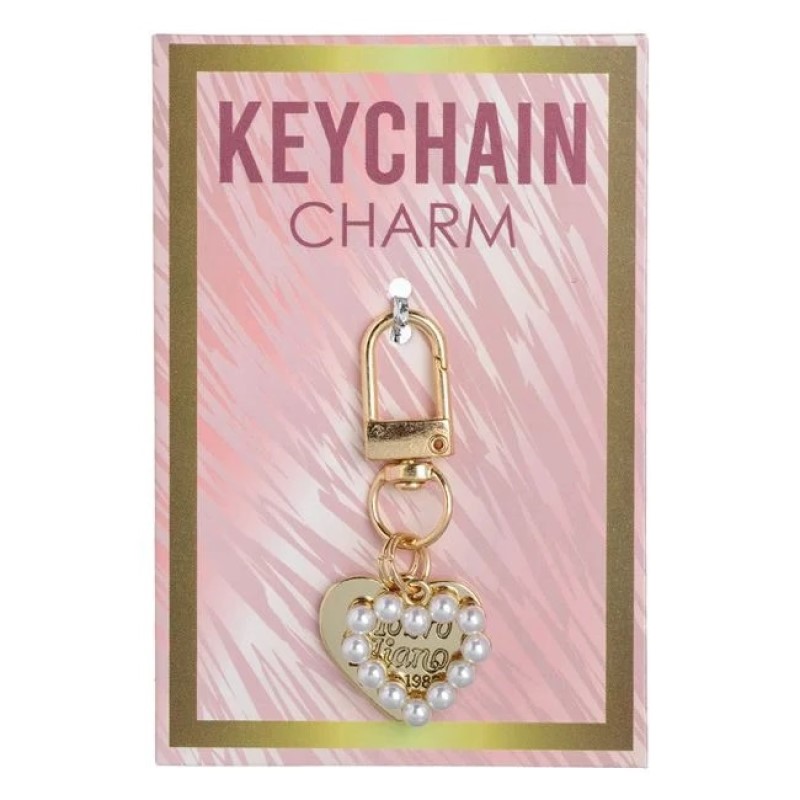 Accesoriu decorativ pentru breloc, realizat din metal rezistent, cu inimioare aurii și mărgele albe pentru un plus de rafinament. Include cârlig pentru agățare, ideal pentru personalizarea cheilor sau a genților.