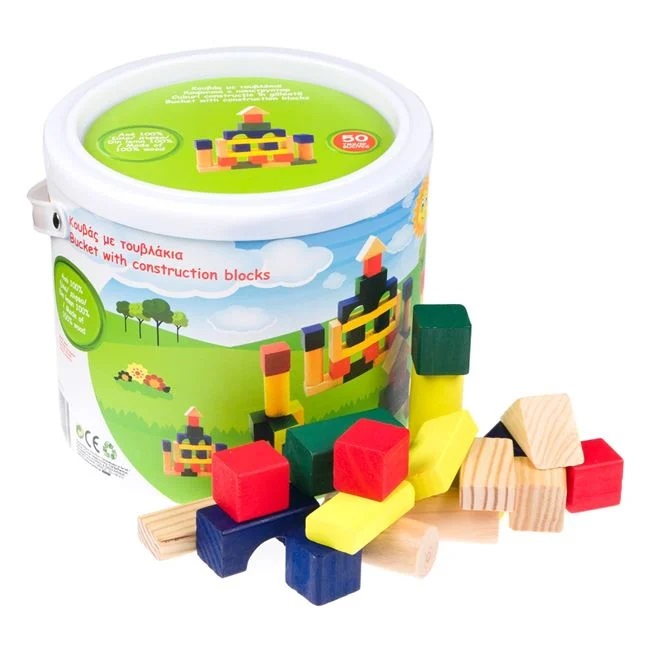 Caramizi de Constructie din Lemn, Creativitatea Copilului, 50 buc
