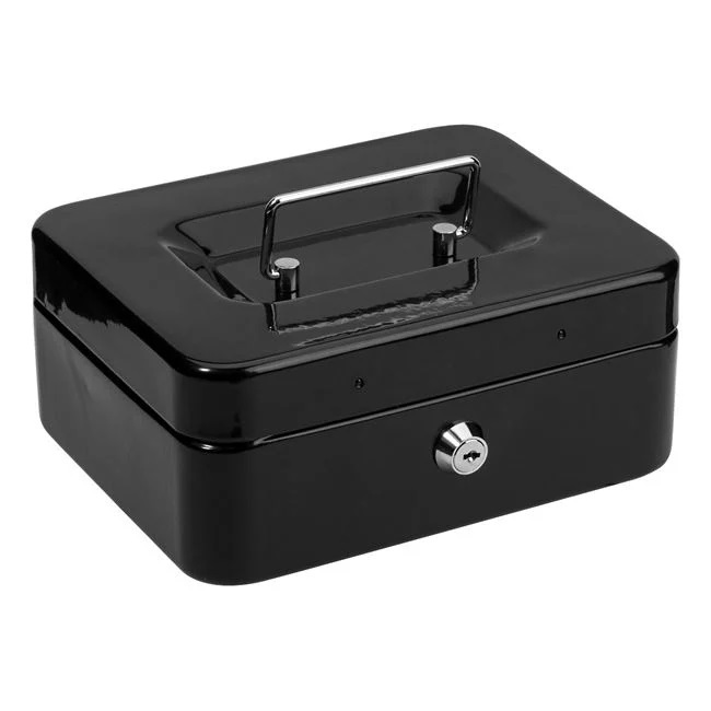 Cutie compactă pentru depozitarea în siguranță a sumelor mici de bani. Realizată din metal și plastic rezistent, este dotată cu un suport intern ce include 8 compartimente pentru monede și un spațiu dedicat pentru bancnote. Dispune de mâner pentru transport facil și se închide cu cheie pentru un plus de securitate.
