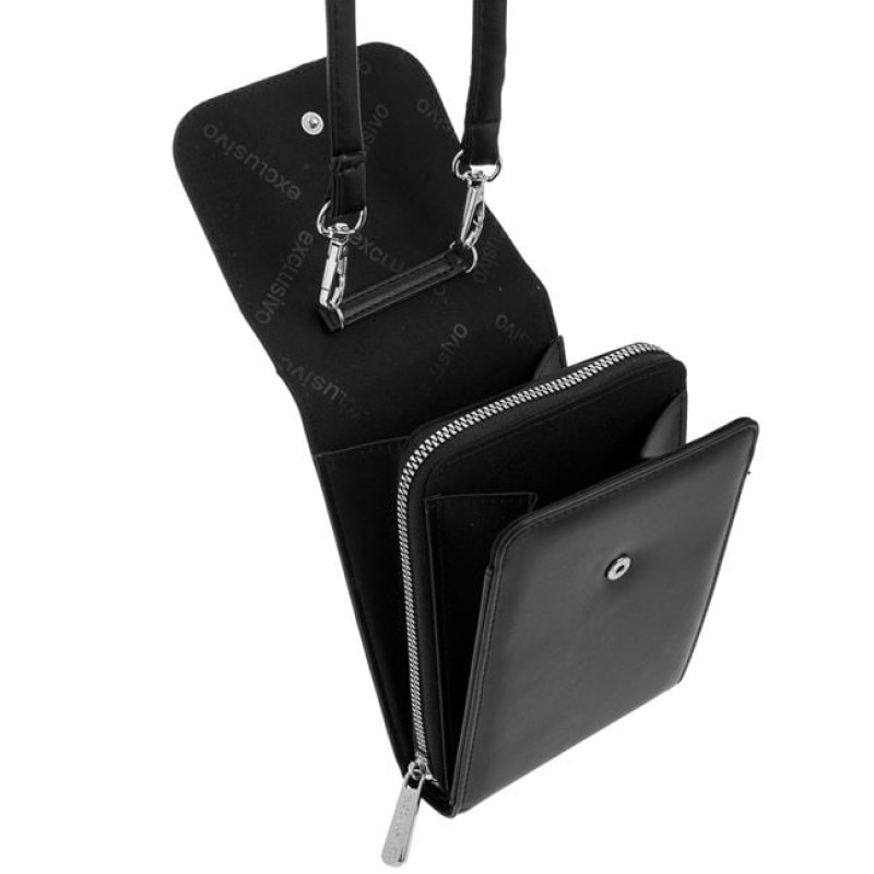 Husă pentru telefon tip gentuță, cu un design elegant și modern, realizată din material SEMI-PU, în culoare neagră mată. Prevăzută cu o curea lungă de 63 cm, este ideală pentru purtare tip crossbody, oferind libertate de mișcare și confort în utilizare.