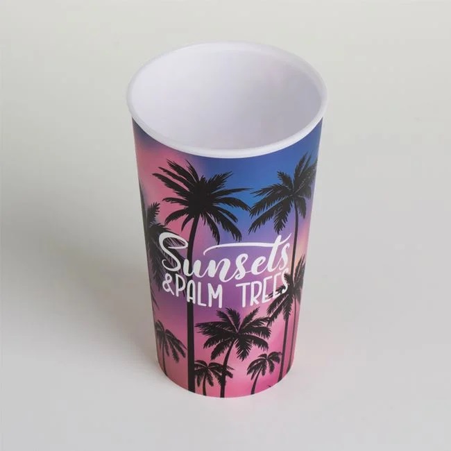 Pahar cu Imprimeu Palmieri din Plastic Roz Lila 650ml