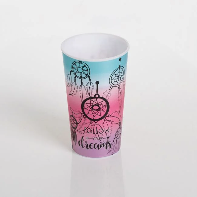 Un pahar vesel și inspirațional, perfect pentru băuturile tale preferate! Realizat din plastic rezistent, acest pahar colorat este decorat cu un model tip dreamcatcher și poartă mesajul motivațional „Follow Your Dreams” – ideal pentru a-ți începe ziua cu un zâmbet.