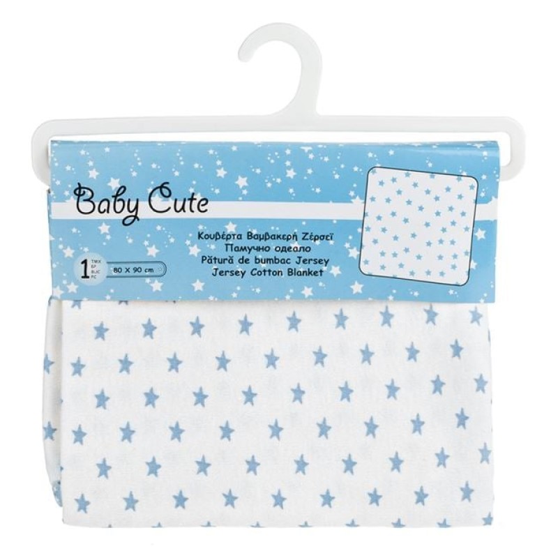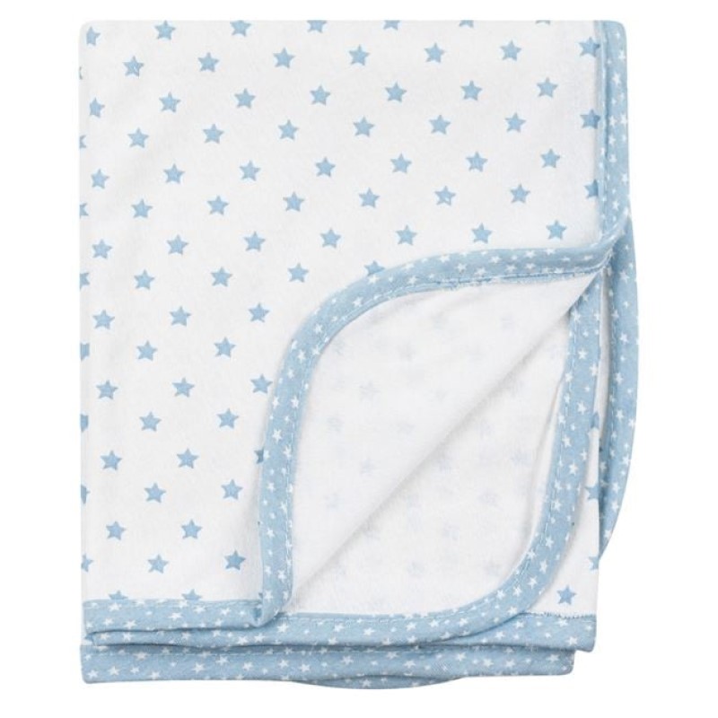 Pătură moale și ușoară, perfectă pentru pătuțul bebelușului în lunile de vară. Fabricată din bumbac respirabil, în nuanță ecru, cu imprimeu delicat de stele ciel și margine asortată. Ideală pentru somnul confortabil și odihnitor al băiețeilor.