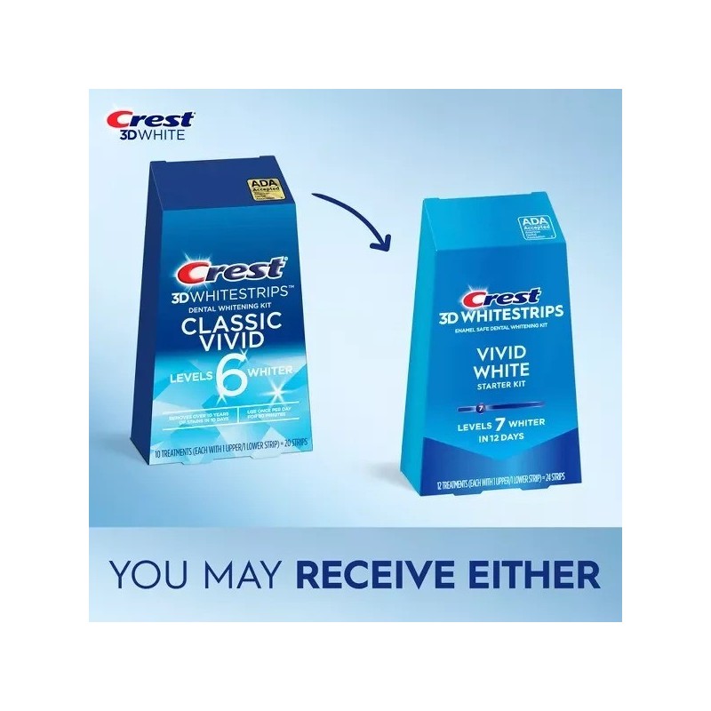 Set 12x Benzi Albirea Dintilor, Crest, 3D White, Classic Vivid, 8% Concentratie, Tratament 12 Zile, 30 min, Nivel Albire 7