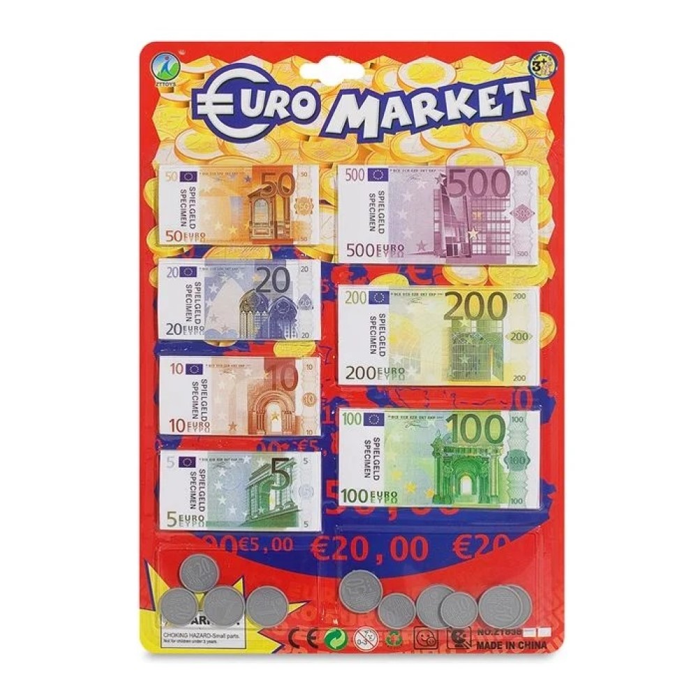 Set cu Bancnote si Monezi Euro, pentru Copii, 71 de piese