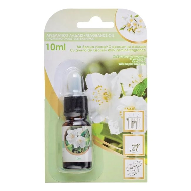 Ulei parfumat cu aromă de iasomie, ambalat într-un recipient prevăzut cu dozator practic pentru aplicare în picături. Ideal pentru utilizarea în suporturi speciale cu lumânări, pentru parfumarea pietrelor decorative sau a altor accesorii ambientale.