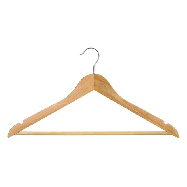 Umerașe din lemn cu finisaj natural, potrivite pentru sacouri, pantaloni, cămăși și fuste. Asigură susținerea corectă a hainelor, menținându-le forma și aspectul impecabil.